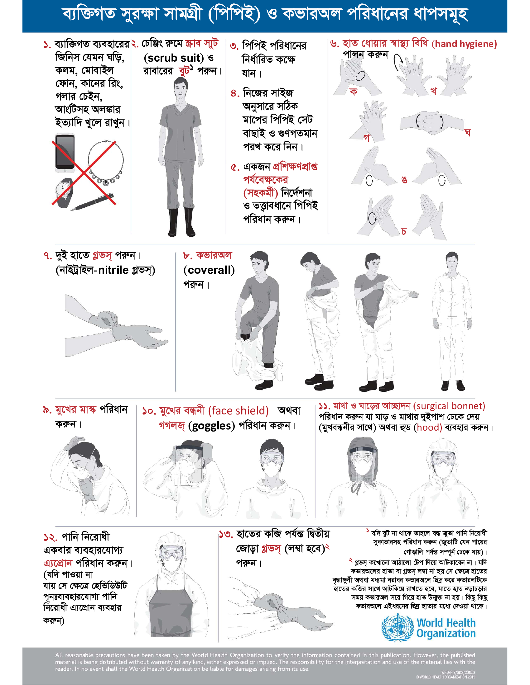 3. Steps to put on PPE and coverall (Bangla)